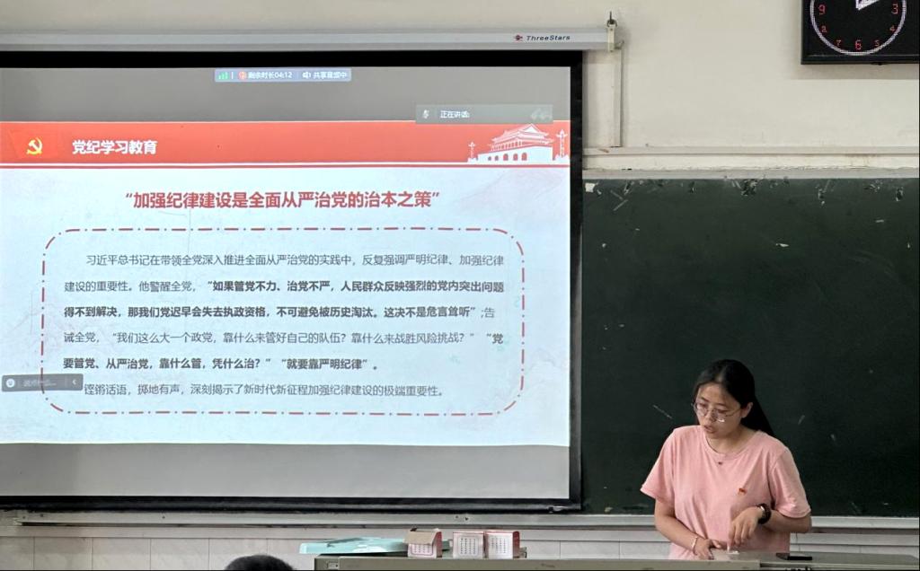 (通讯员 李雅倩)根据学校组织部和学院党委要求,雷竞技RAYBET官网本科生党支部于2024年5月24日开展了党纪学习教育集体学习。本次活动旨在加强支部全体党员的纪律意识,提升党性修养,为学校的高质量发展注入强大的精神动力。活动由支部副书记高欣怡主持,全体党员参加。